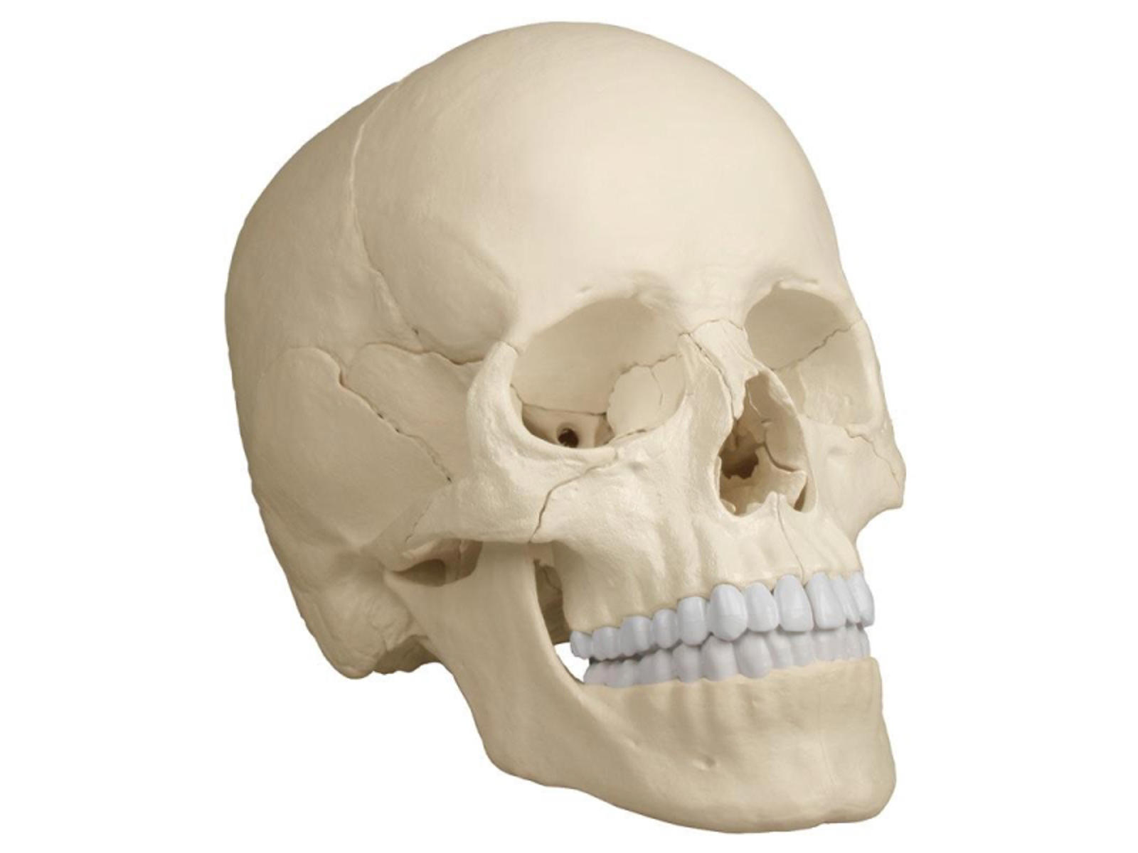 Denne fascinerende model af et gennemsnitlig europæisk voksen kranie kan adskilles i 22 enkelte knogler.