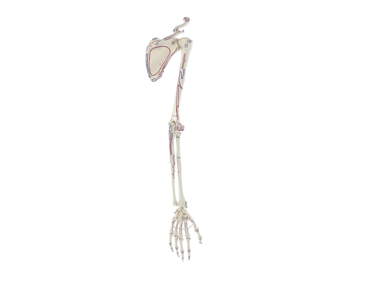 Fordele og funktioner ved Anatomisk model - Skelet af arm med skulderbælte og markering af muskler