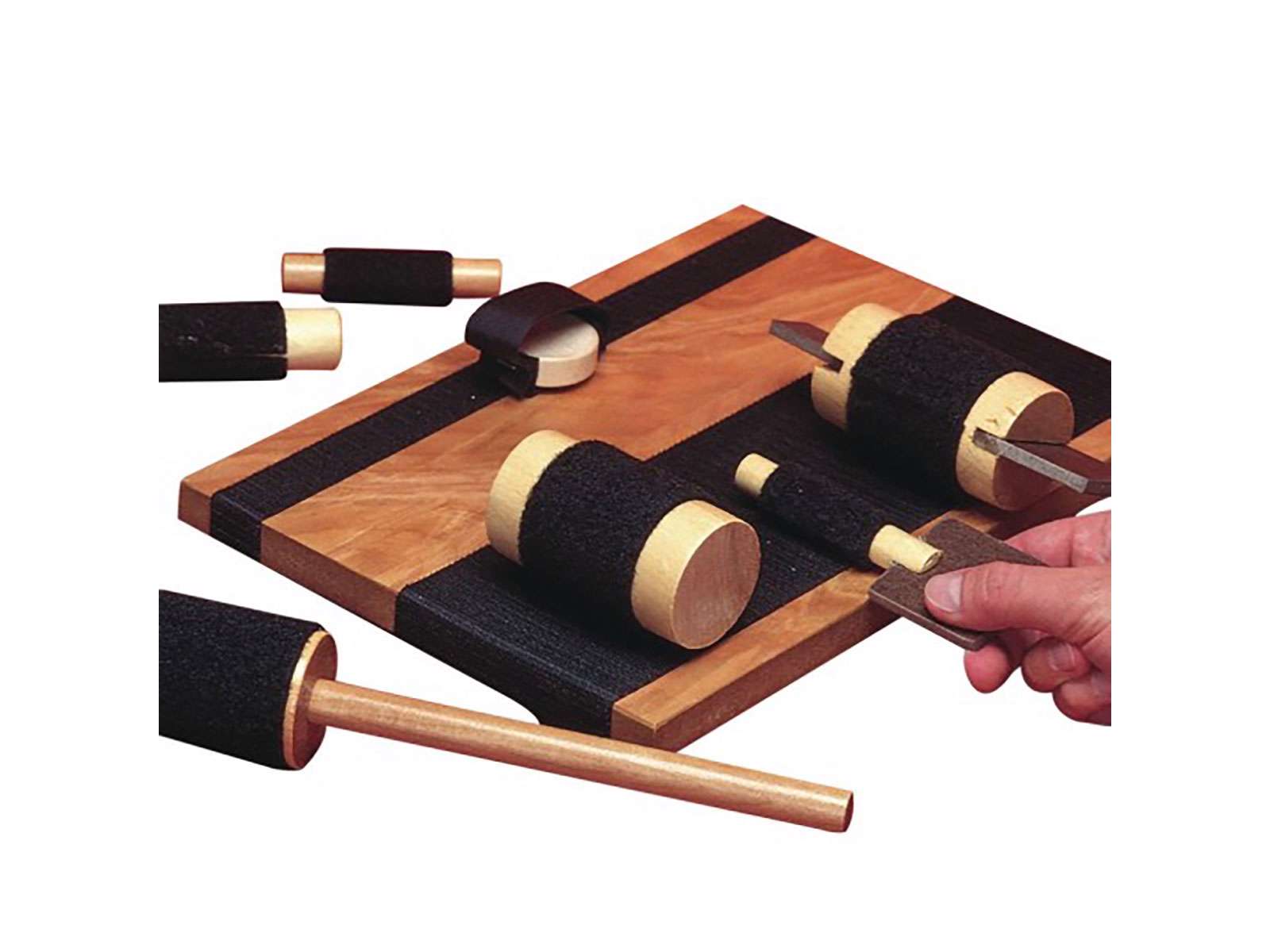 Der medfølger forskellige 7 træningsværktøjer, og de fastgøres til brættet via velcro, for at hjælpe brugeren med at forbedre sine færdigheder i at klemme og gribe.
