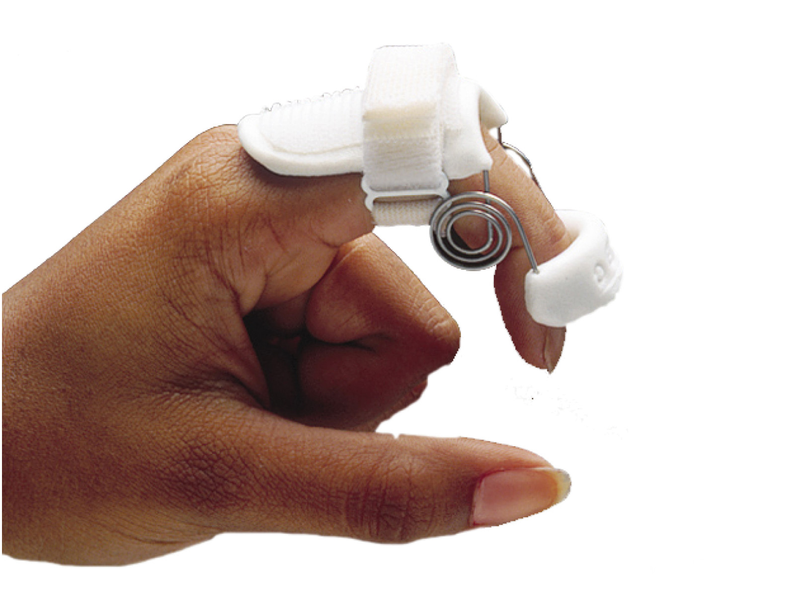 Dobbelte spiralfjedre giver dynamisk fleksion i PIP-led eller IP led tommel led.