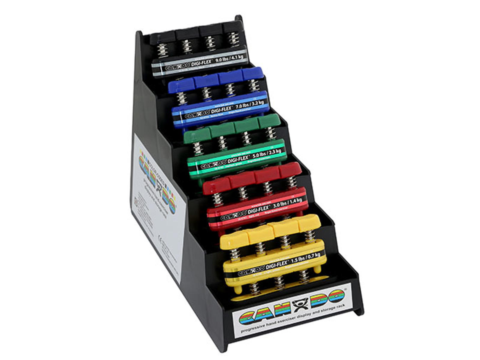 • Hver finger trænes med en fjederbelastet knap. Stærke fingre kan ikke kompensere for svage.