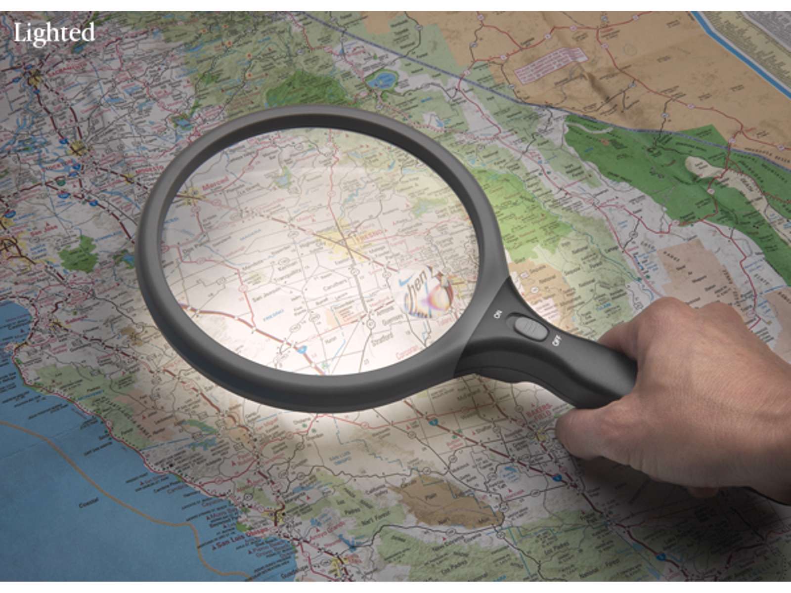 Denne model af SuprVision Magnifier har indbygget LED-lys, der oplyser teksten og gør det lettere at læse.