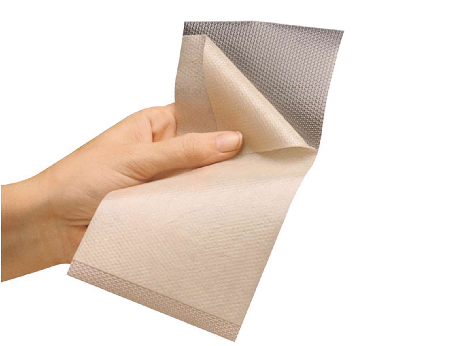 - Hæfter sig let til huden, men vil ikke sidde fast i sårområdet, tøj eller kompressionsforbinding. Hæfter igen efter inspektion af huden.