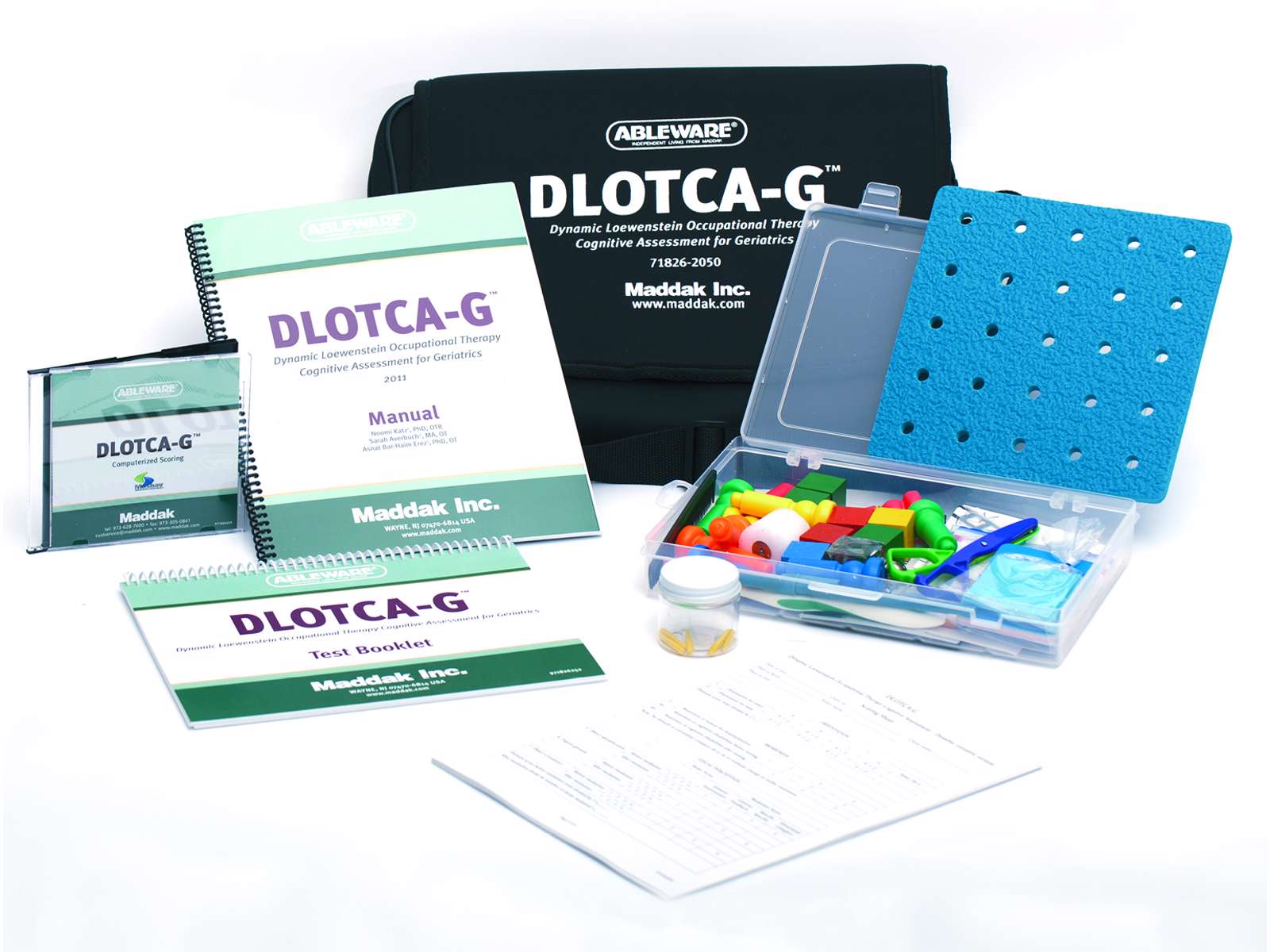 Studier vise at LOTCA™ kan anvendes til at påpege mulige underliggende organiske dysfunktioner. Inkluderet kort, farvede terninger, pinde og plade til pinde, saks, en blank scor e kort og en manual ( på engelsk).