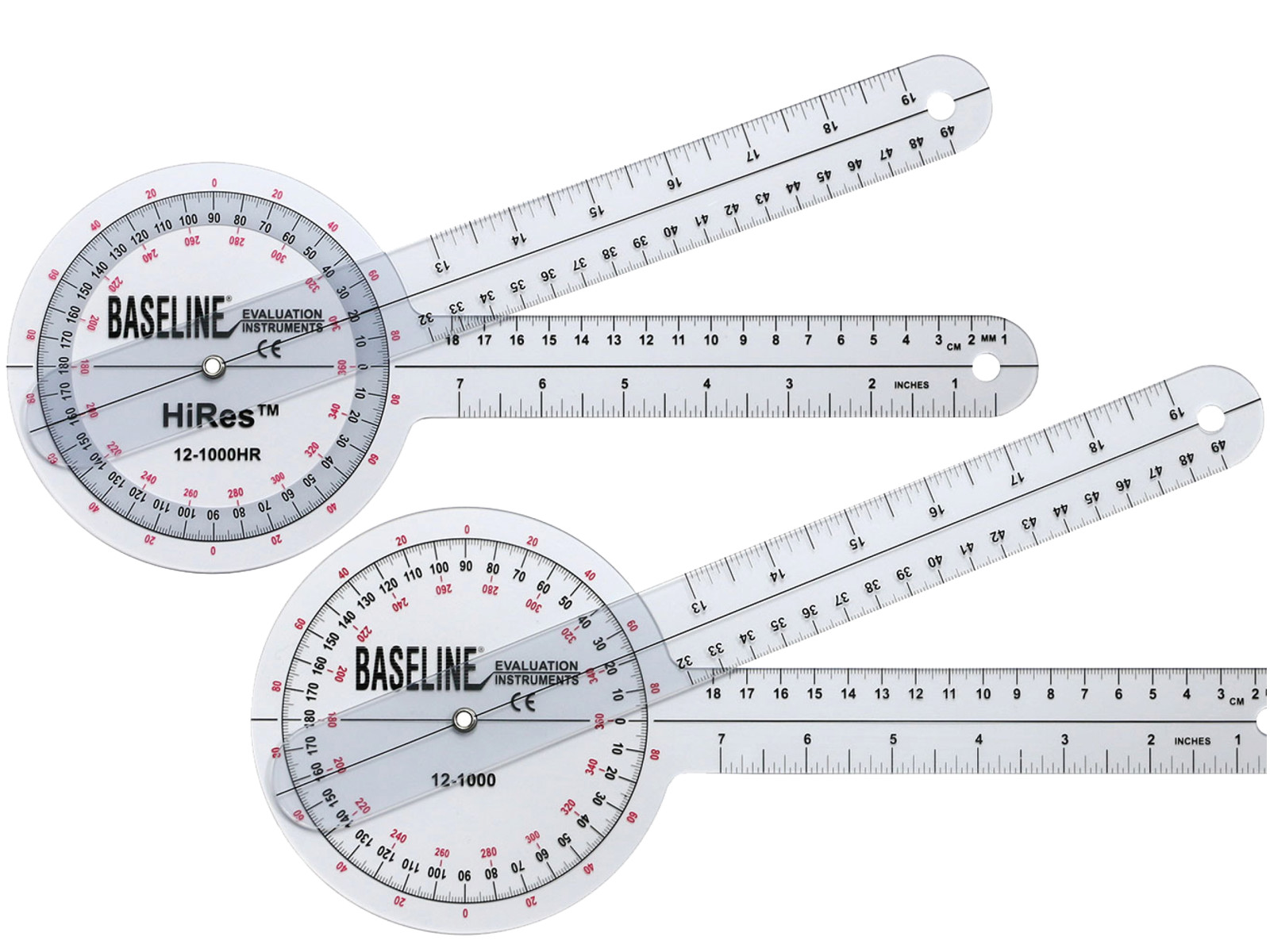 BL12-1000HR: Goniometer med HiRes sort tekst på hvid baggrund for lettere aflæsning af målinger.