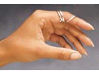 Fremstillet af let bearbejdelig sterling sølv. Sterling sølv er lettere at forme for at tilpasse til mindre forskellig i fingeromkredsen og for at tilrette den ønskede fleksion for at holde PIP-leddet fra hyperekstension.