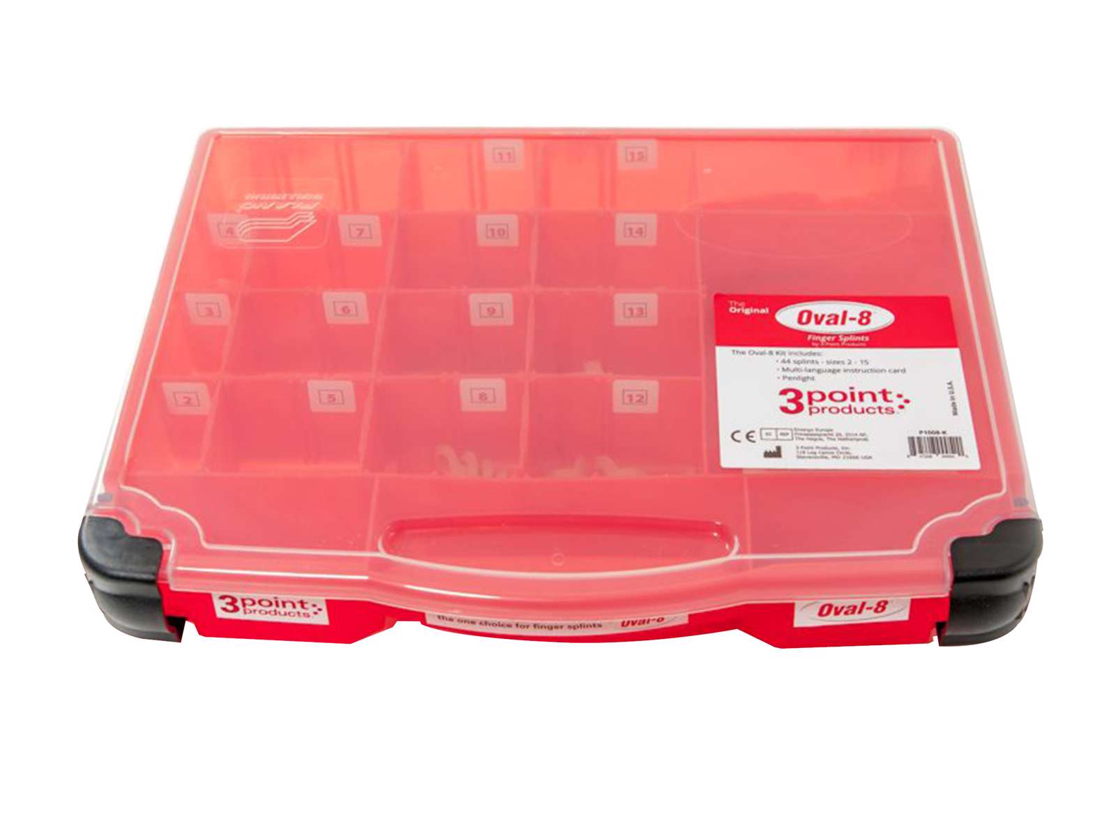 Det økonomiske Oval-8TM kit indeholder 42 skinner fra størrelse 3 til 15, kuffert, ringmål og instruktion.