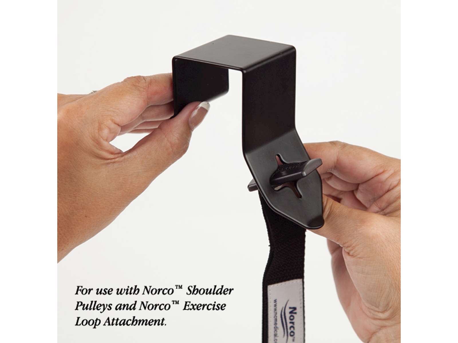 Norco dørbeslag er designet til en nem og sikker fastgørelse af skuldertræneren til døre. Den er et effektivt hjælpemiddel i både klinisk og hjemmebaseret rehabilitering, hvor der er behov for modstandstræning uden store installationskrav. Produktet passer til de fleste dørtyper og muliggør målrettet træning af både over- og underekstremiteter.