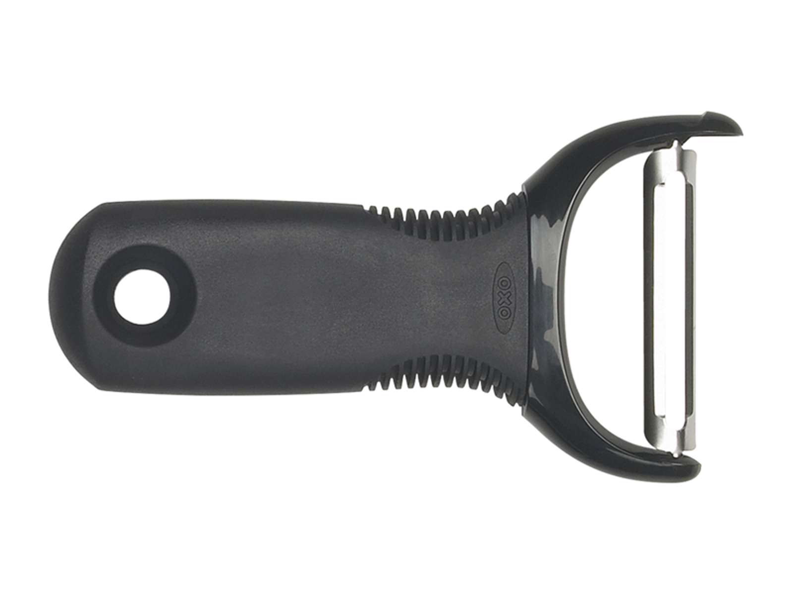 Denne OXO Good Grips kartoffelskræller har en skarp, rustfri klinge, der med lethed glider gennem selv de hårdeste f rugt og grøntsager.