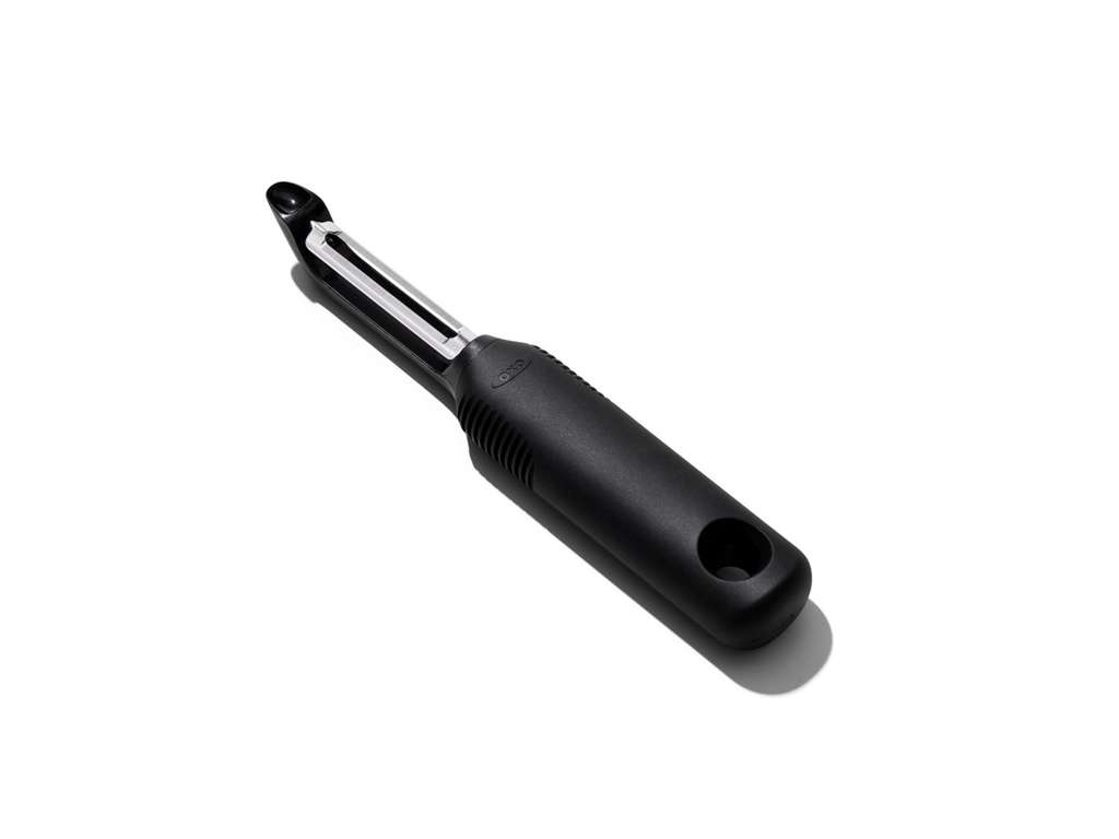 OXO Good Grips kartoffelskrælleren er designet med det patenterede, bløde, behagelige non-slip gummigreb, som selv med våde hænder ikke glider ud af hånden.