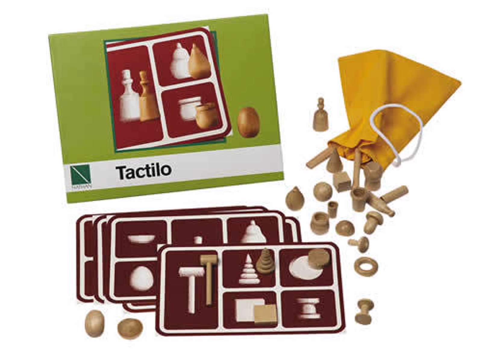 I hjertet af Tactilo ligger 25 dagligdags genstande, alle omhyggeligt udformet i træ, hvilket giver en naturlig og behagelig følelse, når de udforskes. Sammen med 5 billedpaneler af pap og en stofpose til at opbevare trægenstandene, inviterer Tactilo børnene til en sanselig opdagelse. Genstandene skal føles og identificeres udelukkende ved berøring inden for stofposen, og derefter matches med de tilsvarende billeder på billedpanelerne. Dette trinvis spil understreger vigtigheden af taktil opfattelse og understøtter udviklingen af finmotoriske færdigheder.