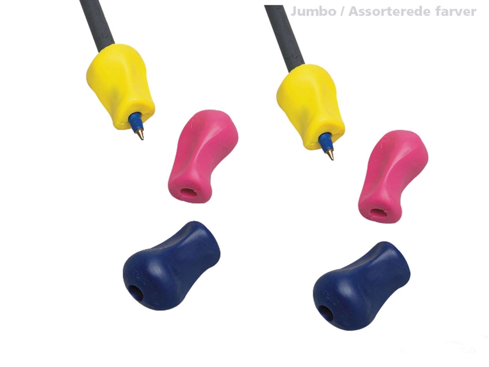 Kommer i en pakke med 12 stk. blyantsgreb i forskellige farver. Kan også købes i en pakke med 3 stk.