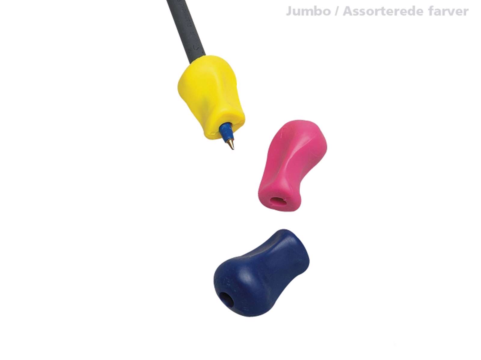 Kommer i en pakke med 3 stk. blyantsgreb i forskellige farver. Vi har også en pakke med 12 stk. greb.