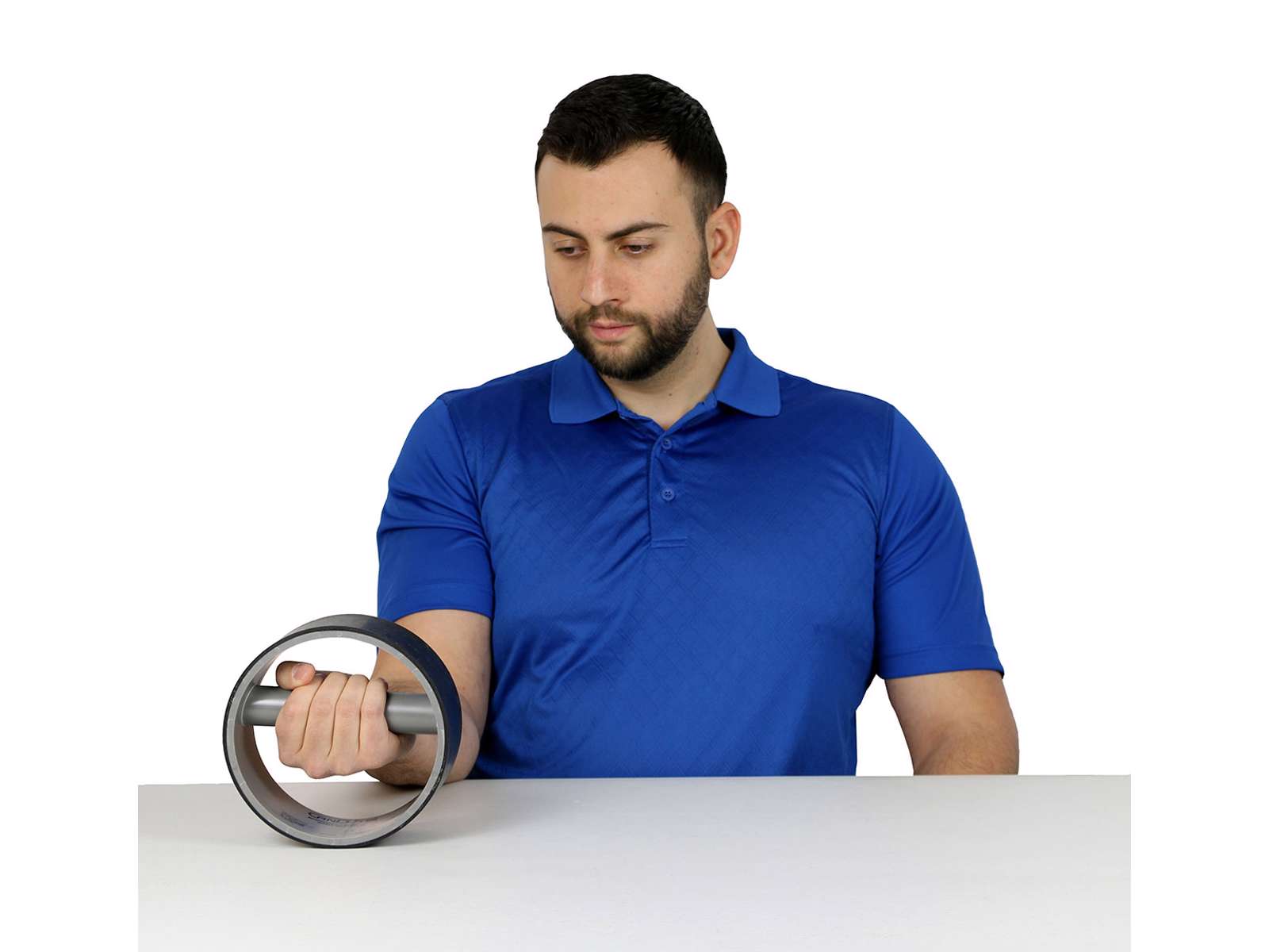 Håndledshjulet har en nonslip gummioverflade på ydersiden af hjulet for at give en så stabil kontakt imod bordet ved brug , når du træner.